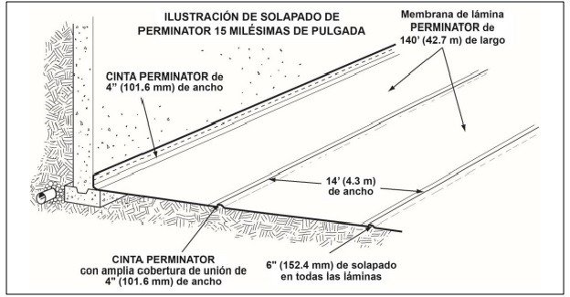 - Extensión: La lámina Perminator se extiende de forma continua sobre el relleno compactado o la capa de base granular.