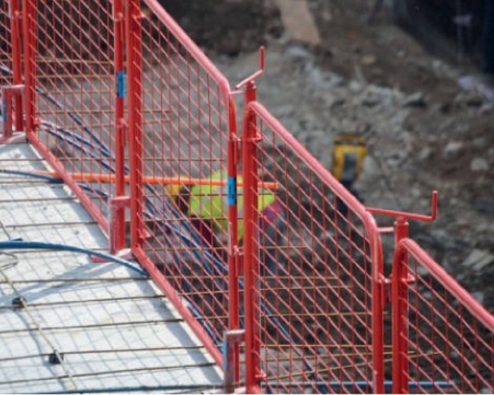 Máxima protección de bordes, baranda de seguridad estandar para losas. Brinda mayor protección evitando efecitvamente caida de personas y materiales.