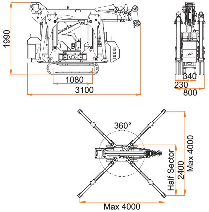 Ideal para proyectos industriales, obras urbanas y trabajos en interiores, esta grúa araña combina versatilidad, potencia y confiabilidad, ofreciendo una solución técnica que maximiza la productividad en entornos exigentes y espacios limitados.