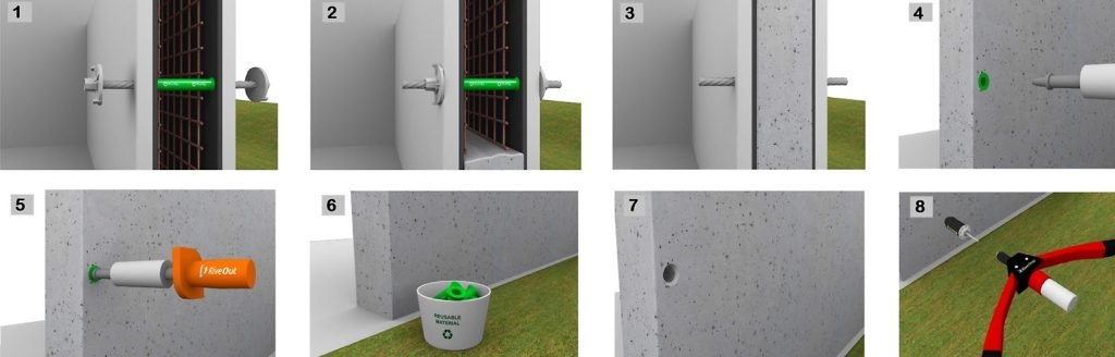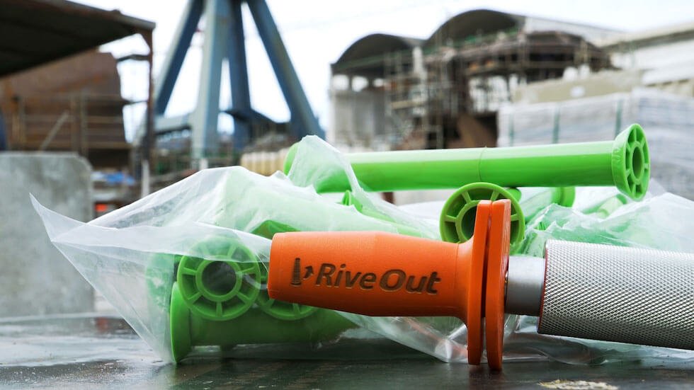 RiveOut es la herramienta diseñada especialmente para extraer el RivePipe del hormigón, solo lo tienes que insertarlo en el Rivepipe de la pared y extraerlo por ambos lados. Toda la operación dura apenas unos segundos. Y listo, el RivePipe ya está listo para usarse de nuevo.